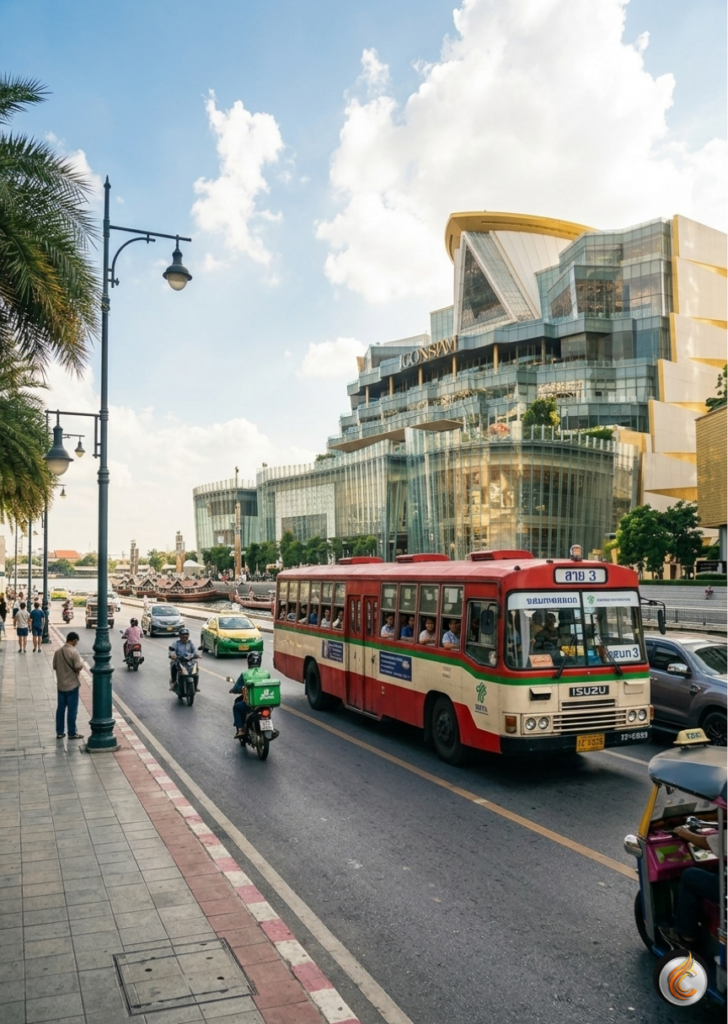 การเดินทางโดยใช้ รถเมล์จาก BTS หมอชิต จตุจักร ไป ICONSIAM ด้วยรถเมล์นั้นเป็นวิธีที่ประหยัดและได้ชมวิวเมืองไปในตัวครับ แม้จะใช้เวลามากกว่ารถไฟฟ้า แต่ถ้าบริหารเวลาดีๆ ก็ถือว่าเป็นเส้นทางที่น่าสนใจไม่น้อย
